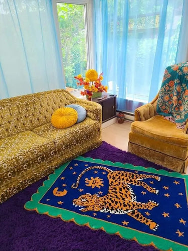 The Walking Tiger in Starry Night rug feels amazing underfoot—soft, plush, and comforting! The quality of the material is top-notch, and knowing it's safe for pets makes it even better. My pets absolutely love lounging on it, and the vibrant blue with golden stars adds a stunning, magical vibe to the room. It’s the perfect mix of beauty, comfort, and pet-friendliness!