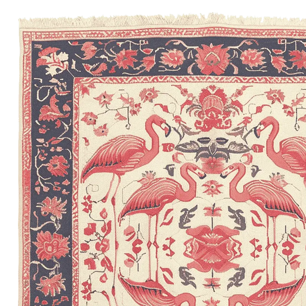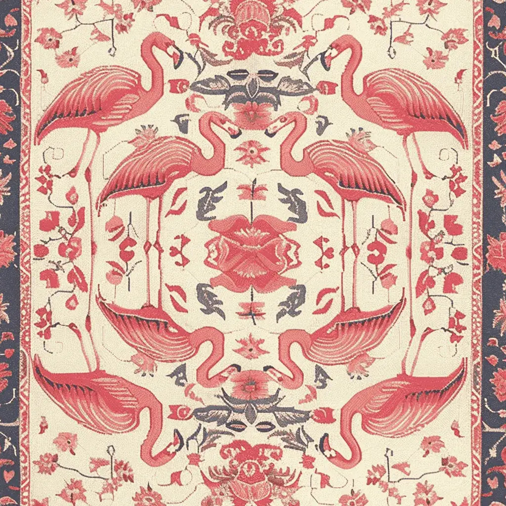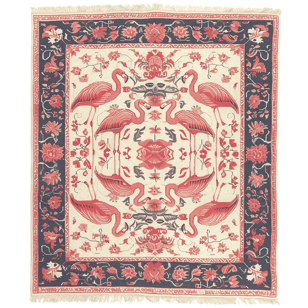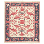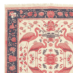 This Hand Knotted Flamingo Reverie Rug is a beautiful mix of style and color. The flamingos poetic beauty is captured in its hypnotic symmetrical shape. The deep blue and deep red colors look great next to each other and make you think of the beauty of faraway places and old Asian art. This is a great piece of decor for people who like big, natural-inspired patterns.