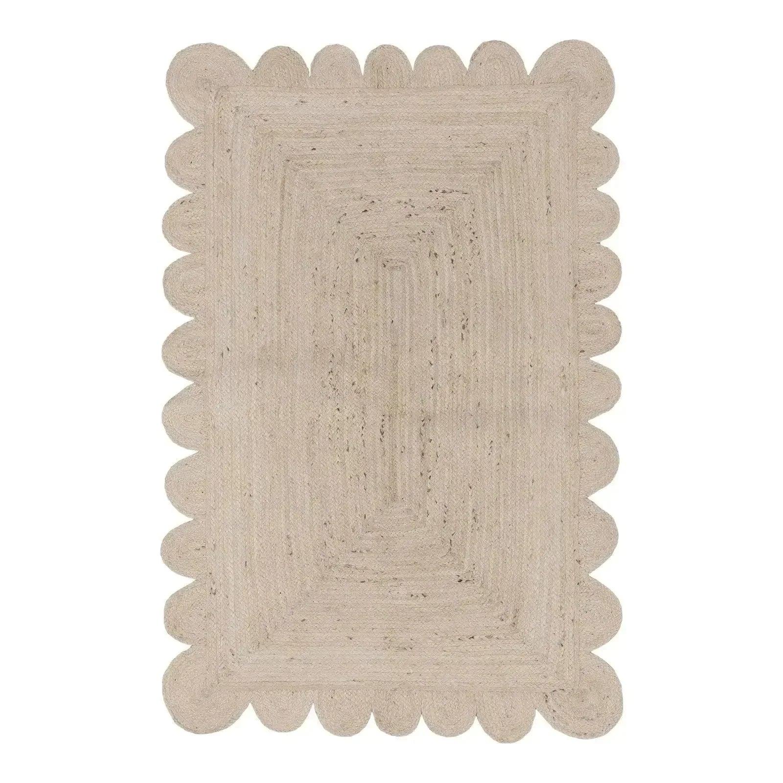 Update your space inside or outside with our Handmade Scalloped Jute Rug in White Choose from a variety of sizes to find the perfect addition to your space. Made from durable natural fibers, this rug is built to last and adds a touch of luxury wherever it is placed.