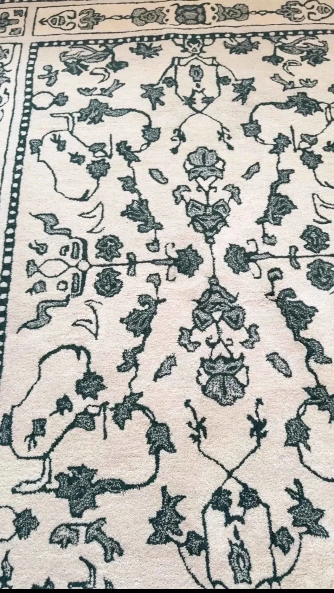 There is a lot of class and beauty in the Ivory Whispers Hand Tufted Rug. It's made of soft, neutral colors and has small botanical accents. Old European and Asian designs are used to make the flower and vine patterns that are balanced on it. This gives it a classic and beautiful look. It looks smooth and airy because of the light green details on top of the white base. It makes any room look better. This rug makes any room feel warmer and more peaceful, so it's great for people who like simple luxury.