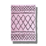Moroccan High Atlas Mountain Berber rugs are very good at making the Black and Pink Diamonds Shaggy Wool Area Rug. It has both a classic look and skilled work. This rug's soft, plush pile and classic diamond patterns, which come from tribal art, make any room feel cozier and more unique. The warm grays and bright pinks make it stand out. It feels and looks both old and new. Because they are made, washed, and dried by hand in the mountain air, each rug is unique.