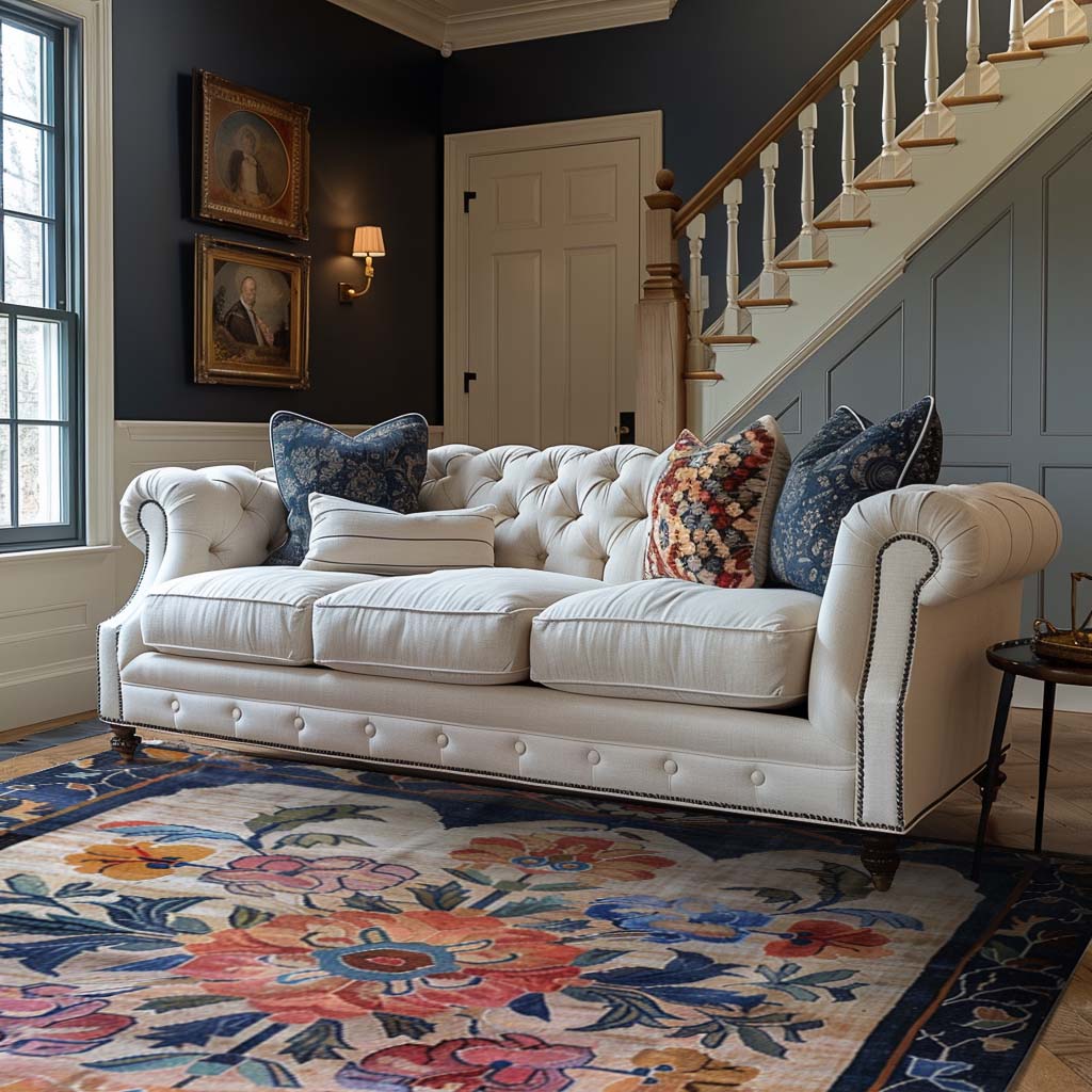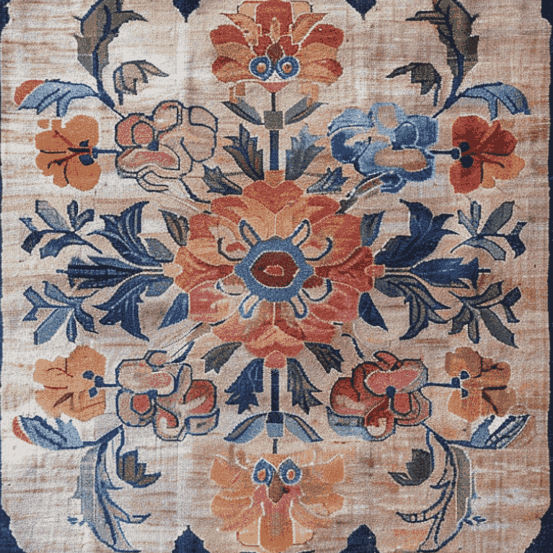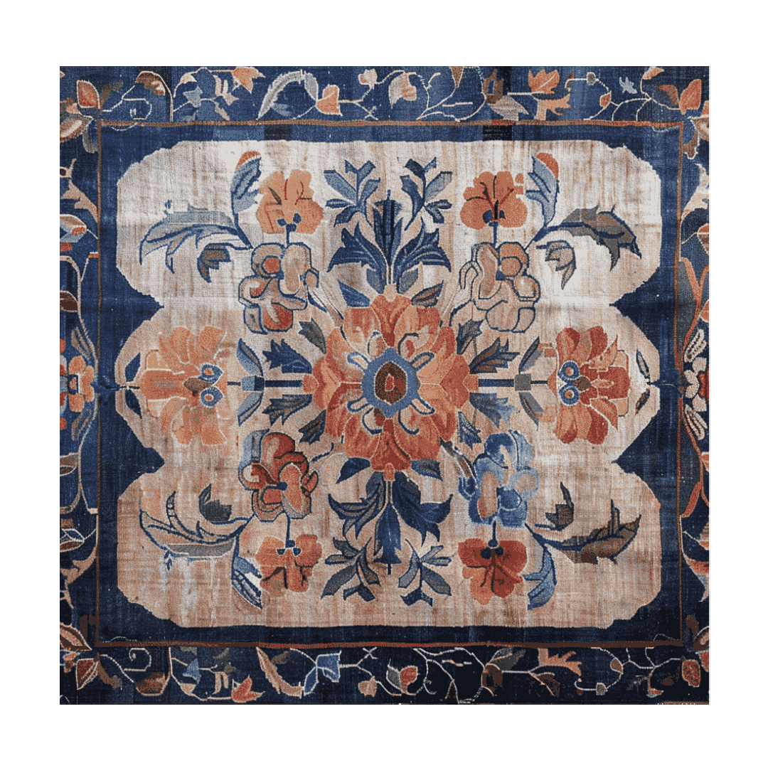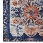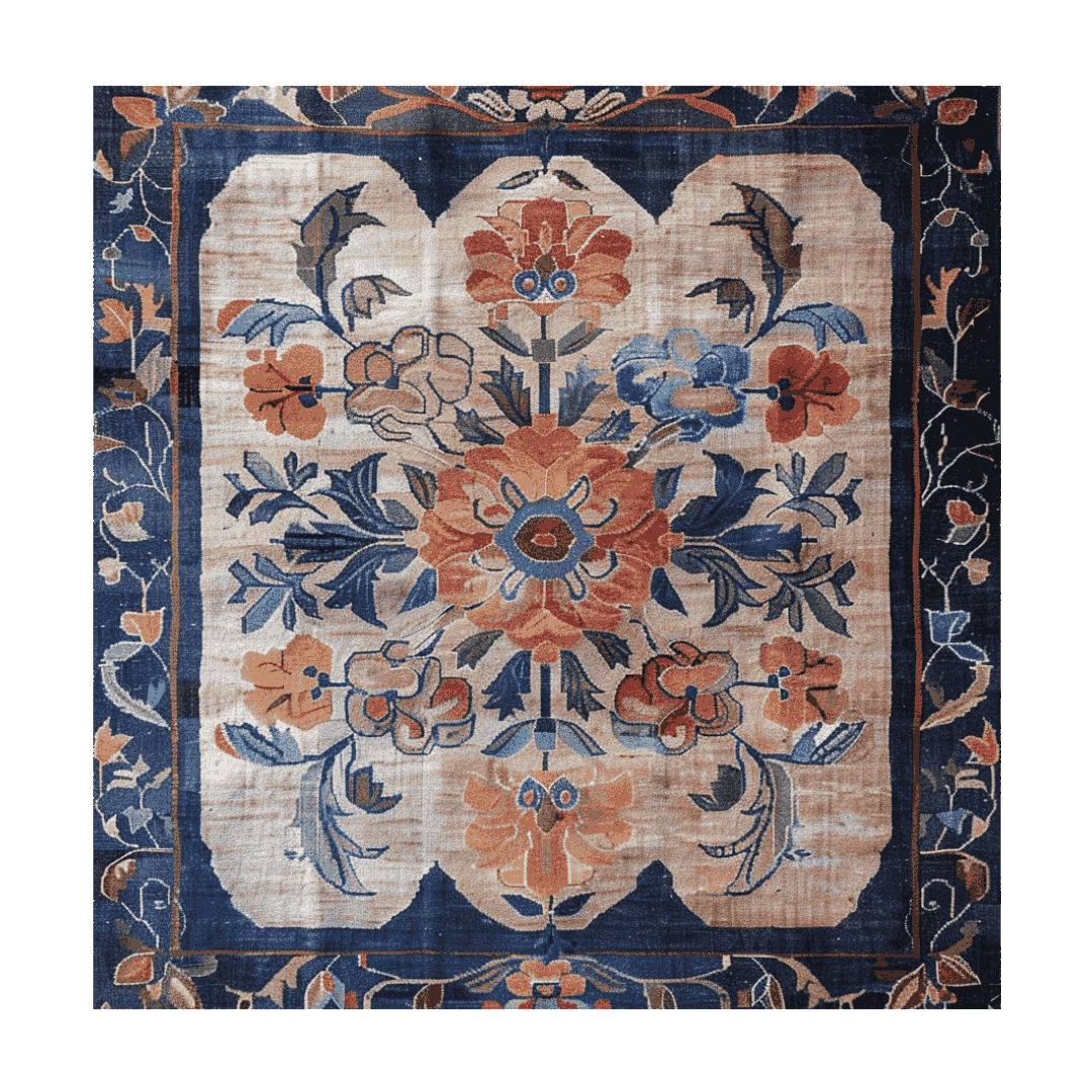 Celebrate timeless elegance with the Blossom Artistry Hand Knotted Rug , where vibrant florals take center stage. Featuring a grand central medallion of blooming flowers in warm rusts, golds, and blues, this handwoven wool rug beautifully contrasts against a soft ivory backdrop, framed by a deep navy border adorned with delicate vine motifs. The rich color palette and intricate detailing evoke a sense of vintage charm, while the symmetrical floral arrangement adds balance and harmony. Ideal for adding warmth and character to living spaces, this rug is a stunning blend of tradition, artistry, and timeless beauty.