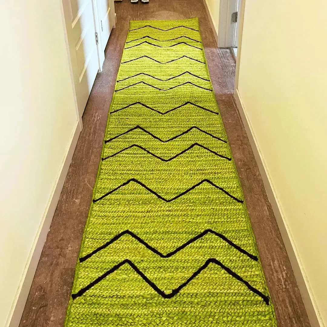 Of course! A kitchen runner rug softens the floors and makes it more comfortable to stand at the sink or counter. The Handmade Olive Green Scalloped Border Jute Rug is a stylish and earthy addition to any room. The long-lasting jute fiber makes it easy to clean.