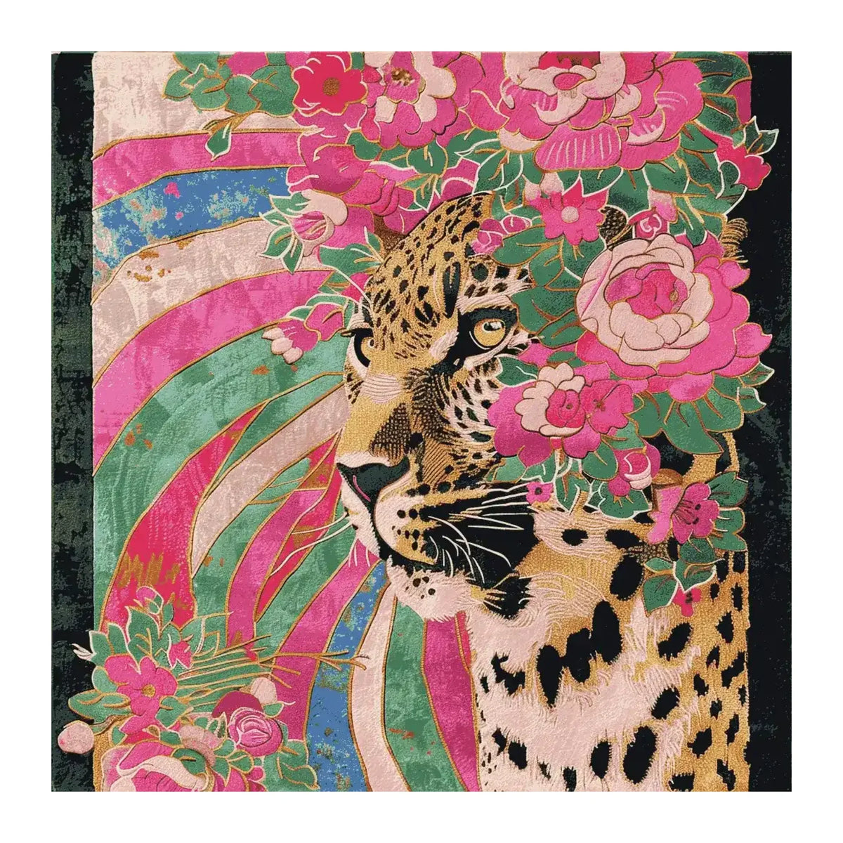 The Jungle Throne Bloom Rug is available in an array of square sizes, from 3' x 3' up to a generous 15' x 15'. This ensures that, be it for a cozy reading nook or a grand living room, there's a size that fits perfectly. This stunning rug is more than a floor covering; it's a statement piece that bridges the gap between fashion and function. Discover the allure of the wild with this stunning piece, showcasing the best of nature-inspired, animal-inspired and floral design elements.