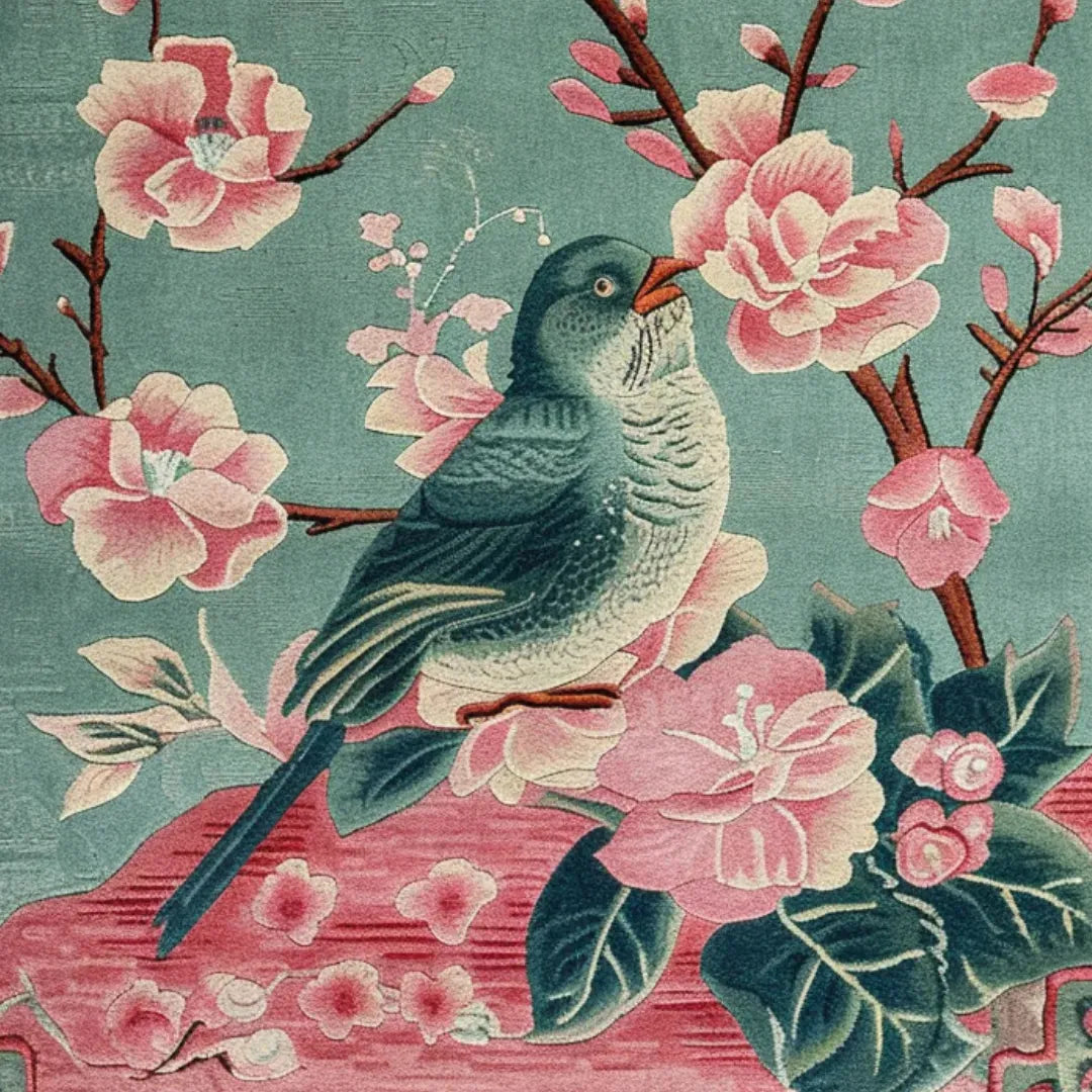 Introducing the Avian Bloom Hand Tufted Rug, where nature's poetry unfolds in vibrant hues and delicate forms. Picture a tranquil garden alive with the symphony of chirping bird and blooming pink flowers, each thread meticulously crafted to capture their essence. Hand-tufted with luxurious wool, this rug not only brings artistic elegance to your space but also infuses it with the charm of a blossoming spring morning. Perfect for those who cherish the beauty of nature indoors, let this rug transform your home into a sanctuary of serene beauty and avian delight.