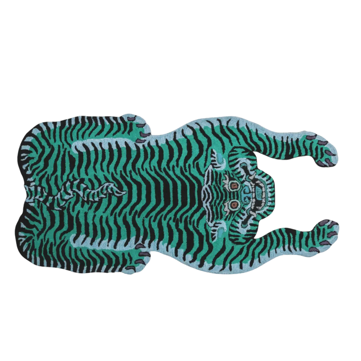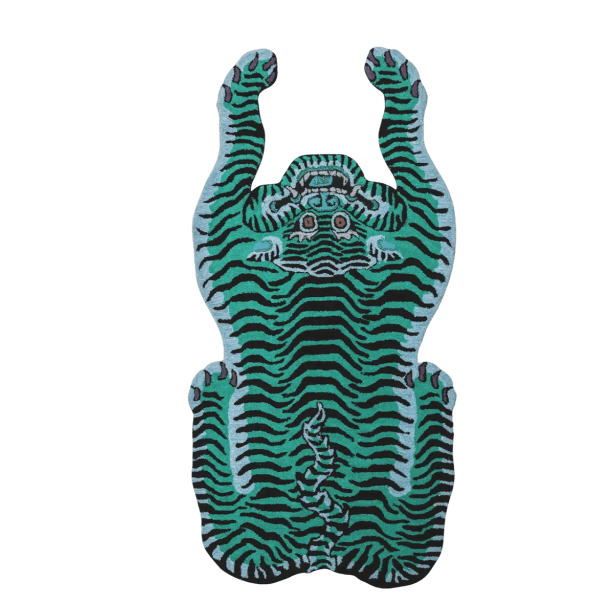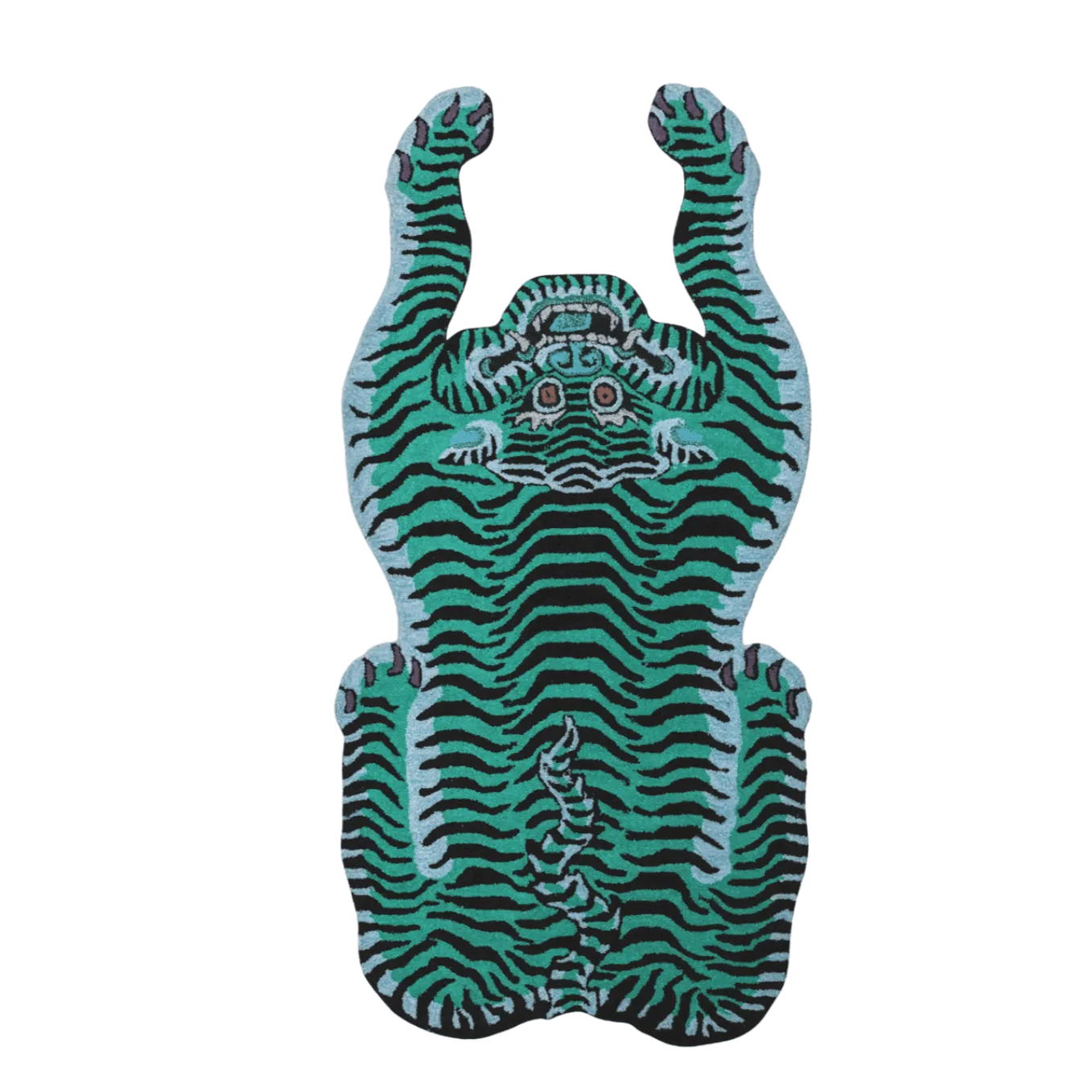 Transform your space with our Blue and Green Tiger Yogi Accent Wool Rug! Handcrafted from premium wool, this eye-catching rug features a bold tiger print in shades of blue and green, making it the perfect statement piece for any room. With its durable construction and soft texture, it's the ideal choice for high-traffic areas like living rooms and entryways. Elevate your decor with the Blue and Green Tiger Yogi Accent Wool Rug today!