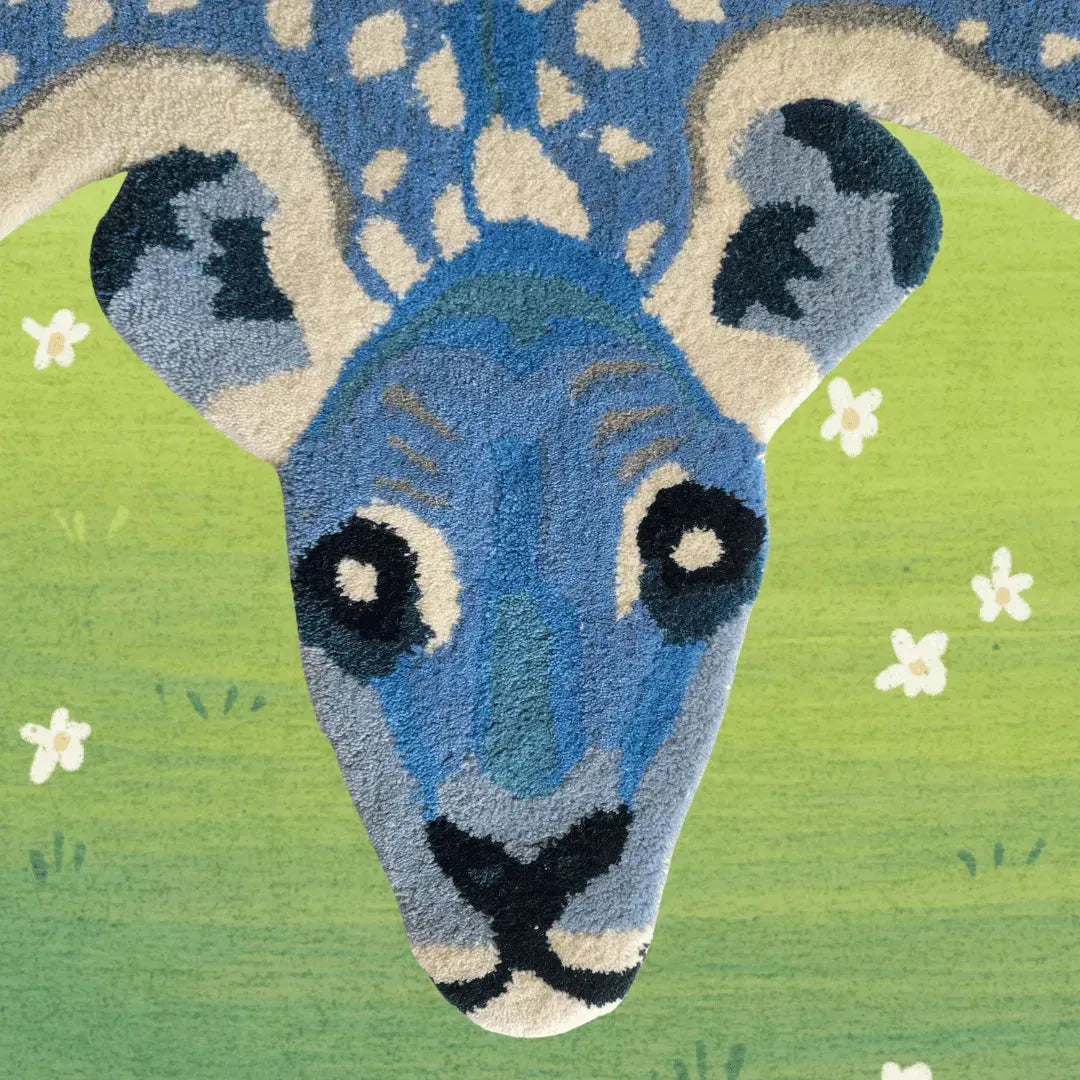 Celebrate and preserve artisan handcrafts and global traditions around the world with our For the Love of Deer Hand Tufted Wool Rug in vibrant blue color.