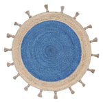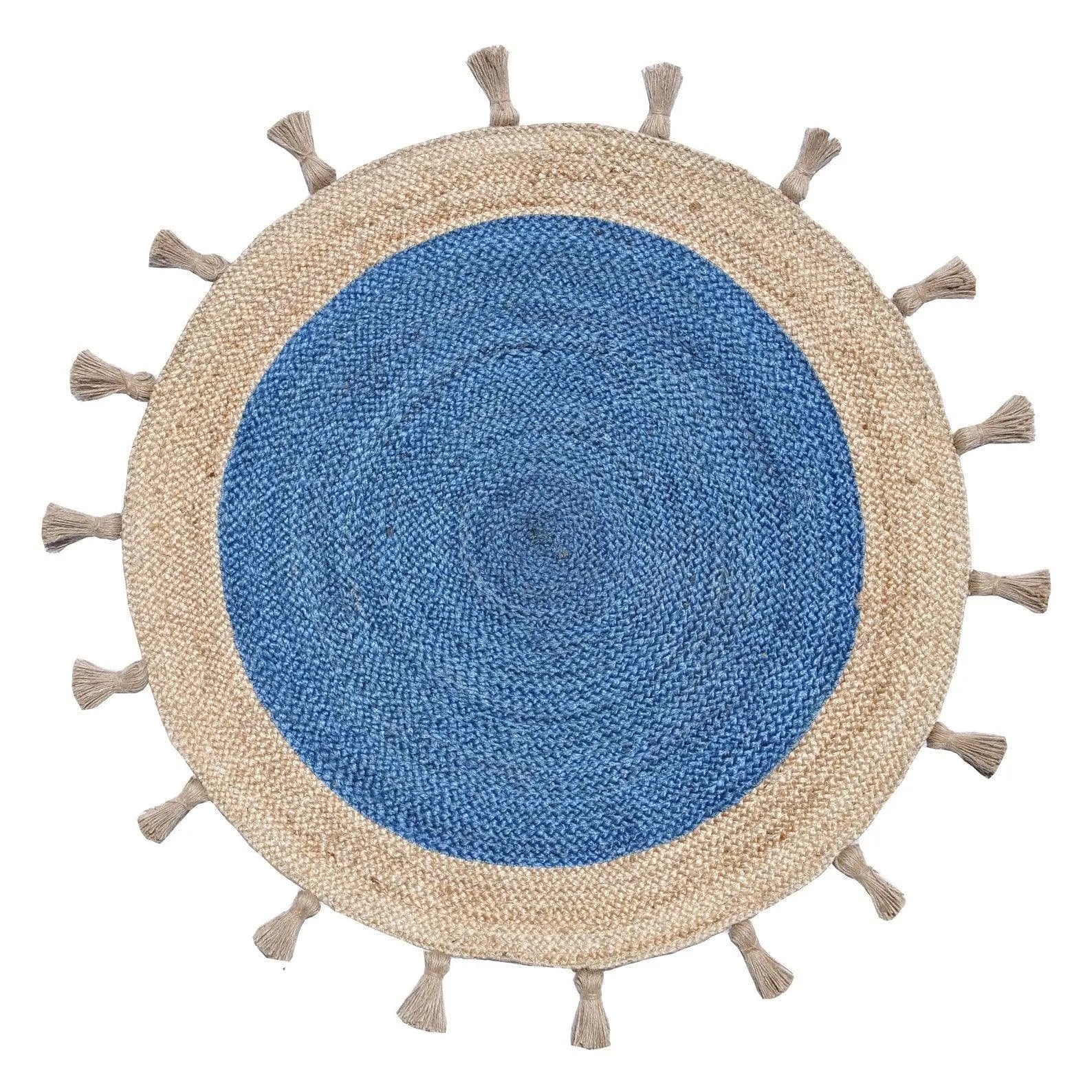 Beautify the space inside or outside your home with this Fringed Blue Round Jute Rug. Choose from a variety of sizes to find the perfect addition to your space. Made from durable natural fibers, this rug is built to last and adds a touch of bohemian vibe wherever it is placed.