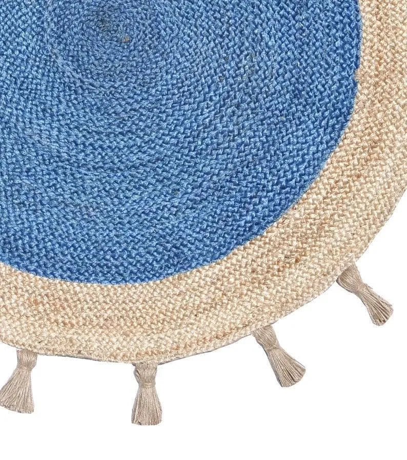 This Fringed Blue Round Jute Rug is kid and pet friendly, making it suitable for high-traffic areas such as your living room, dining room, kitchen, office, and entryway.