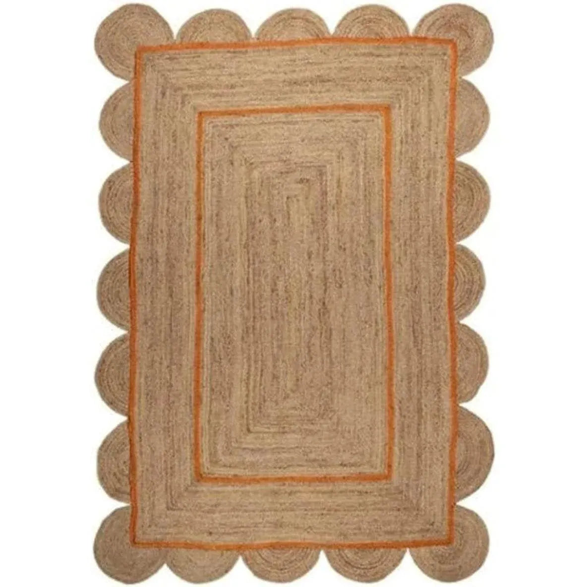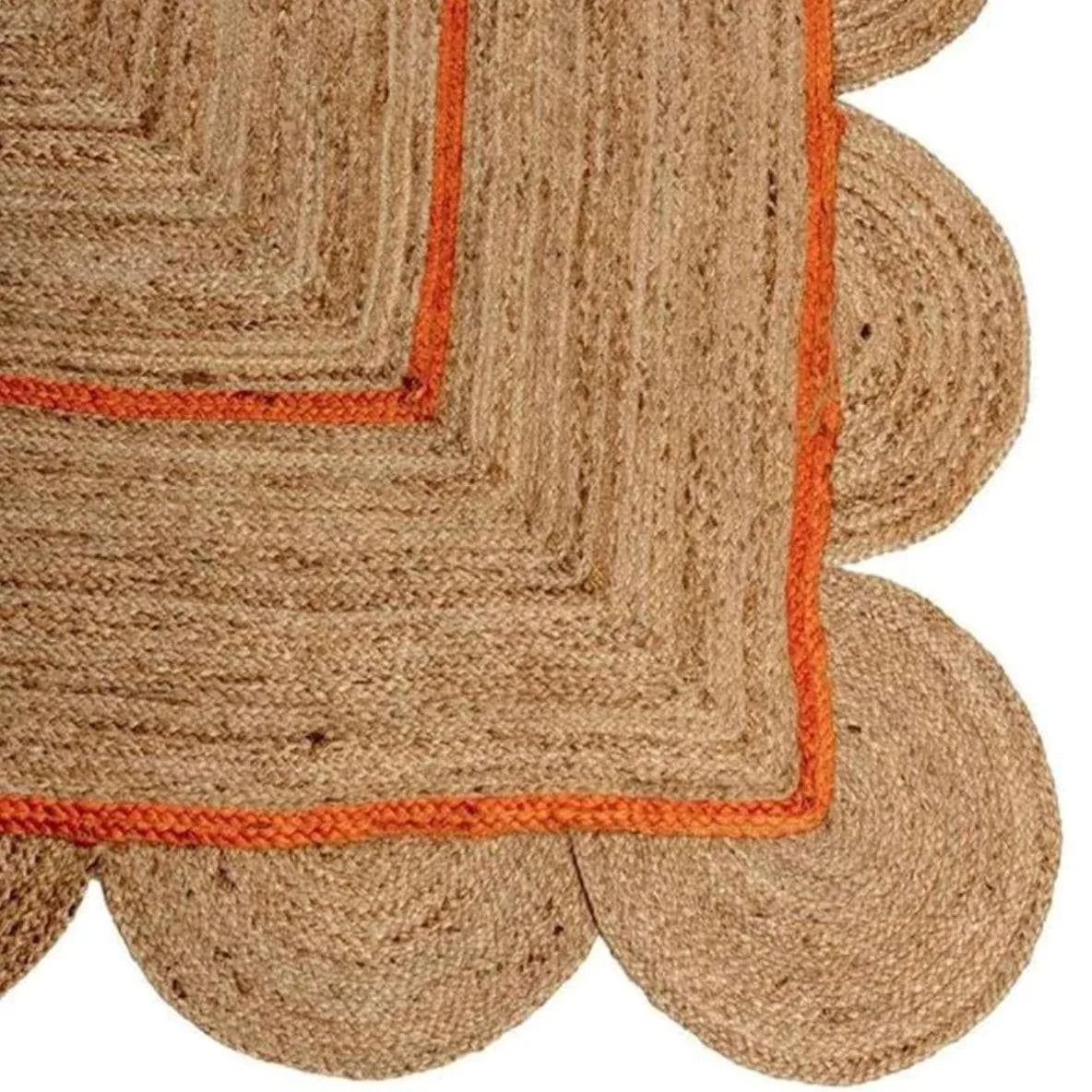 Beautify the space inside or outside your home with this classic Handmade Orange Scalloped Jute Rug. Choose from a variety of sizes to find the perfect addition to your space. Made from durable natural fibers, this rug is built to last and adds a touch of luxury wherever it is placed.