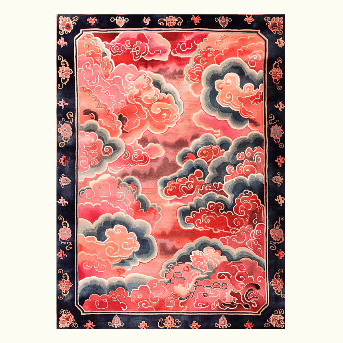 Elevate your space with the Vermilion Cloud Frame Hand Tufted Rug, where traditional Japanese artistry meets modern luxury. This striking rug features ethereal red clouds delicately framed by a sleek border, creating a dramatic contrast that enhances any room's ambiance. Perfect for adding a touch of cultural charm and warmth to your decor, this rug transforms your floor into a canvas of refined beauty.