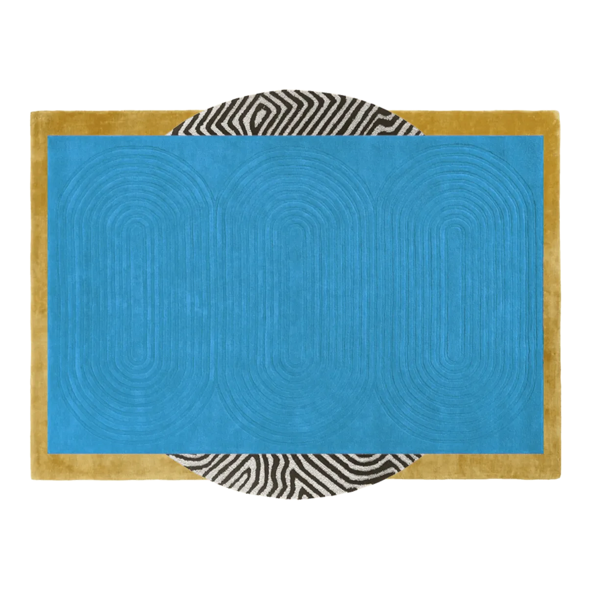 Elevate your space with our Water Earth and Sun Hand Tufted Wool Rug.
